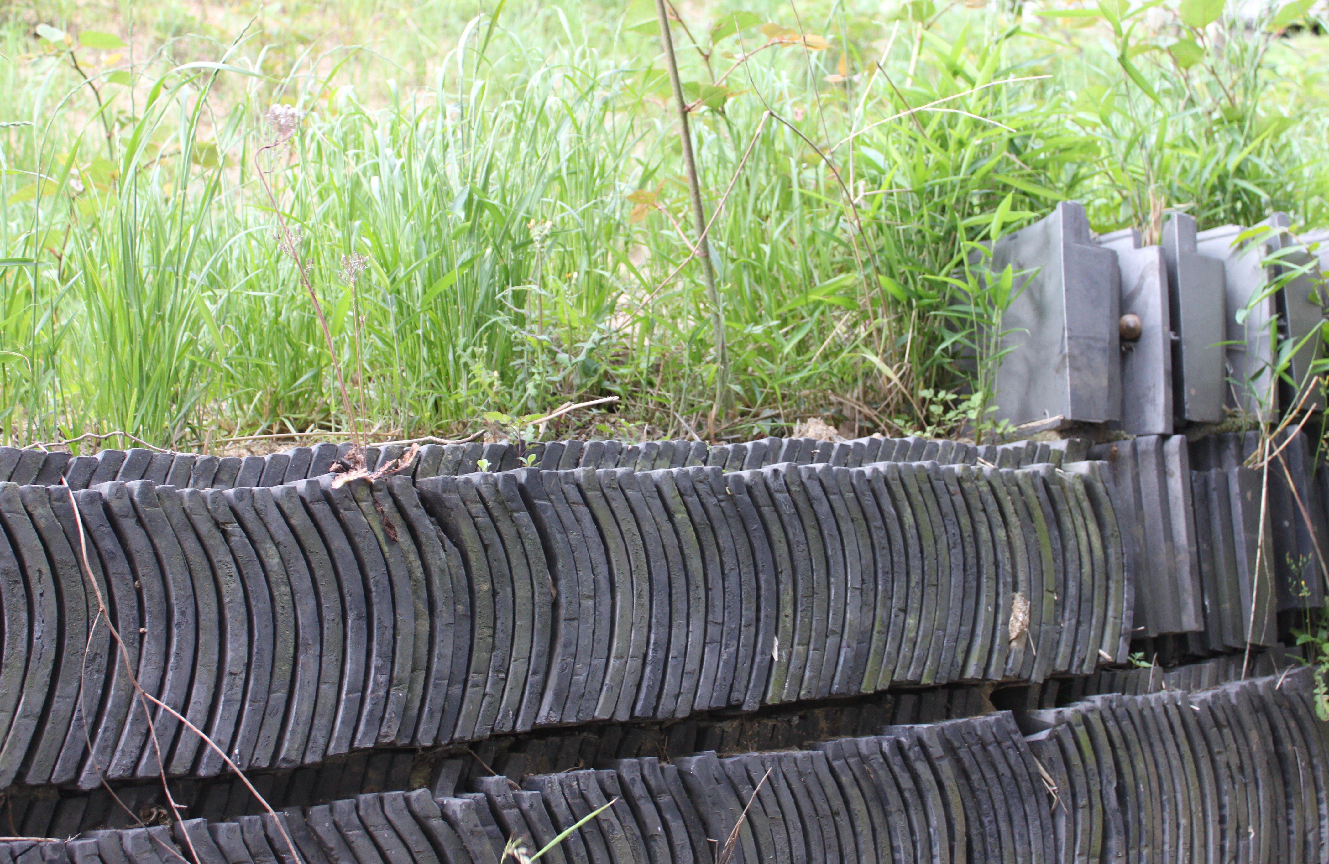 瓦をコンクリートの代わりに並べ、積んであります